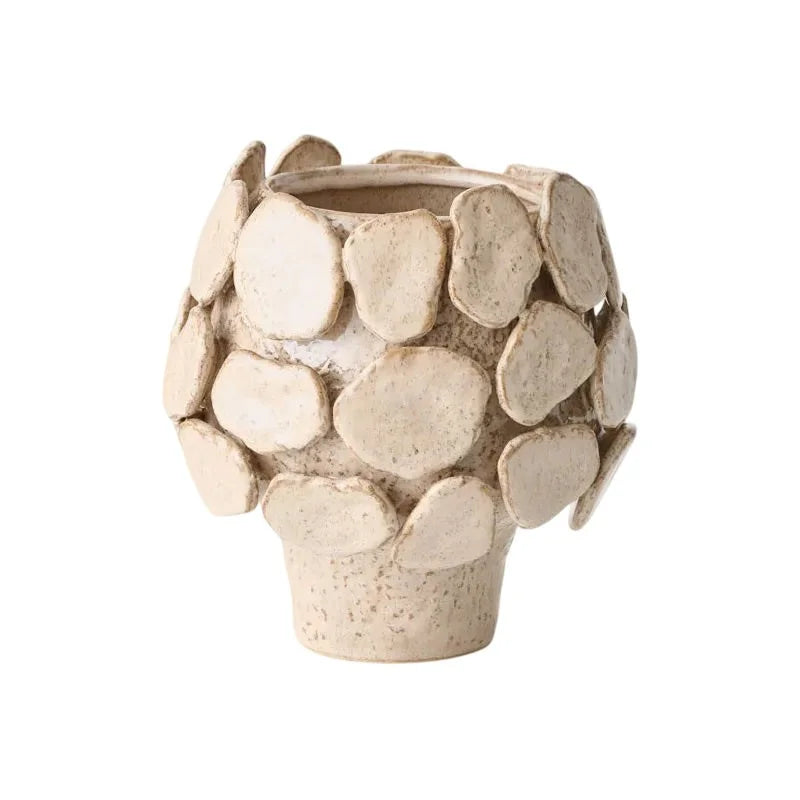 The Ariela Ceramic Pot in Almond Crème features a hand-finished glaze and bold 3D detailing, blending artistry with modern design. Its abstract form and sculptural presence make it a standout accent piece, perfect for adding texture and visual interest to any interior.